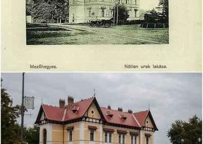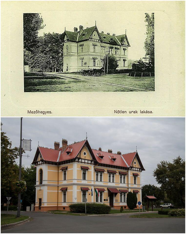 Házi feladatnak kaptam, hogy régi képeslapokat fotózzak meg a jelenlegi helyzetükben. *** Sajnos a Fortepan nem tartalmaz képeket a városról…. de van egy NAGYON kedvenc könyvem: ‘Békebeli üdvözlet Mezőhegyesről – Válogatás Kerekes György képeslapgyűjteményéből’ . Nem tudom, kapható-e még a könyv, de ~150 oldalnyi képeslapot tartalmaz. Ebből szemeztem néhányat a leckémhez, és szerettem volna ezt megosztani a Mezőhegyest kedvelő ismerőseimmel is. *** A célom az volt ezzel a sorozattal, hogy megmutassam, Mezőhegyes mennyi mindent megőrzött a régi időkből. A képek nézegetése közben úgy gondolhatjuk, talán nem is telt el olyan sok idő a két kép elkészülte között, mivel sok épület még mindig ugyanott áll, ugyanúgy néz ki, a környezete sem változott. Ezt sok várossal nem lehetne hasonlóképp megcsinálni, mert vagy modernizálódott, vagy el lettek bontva az épületek.