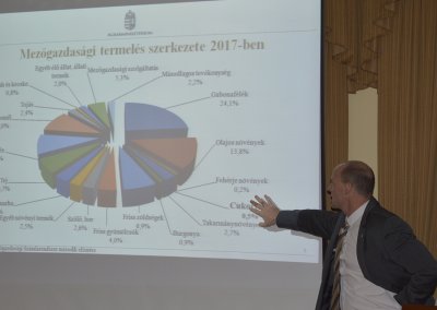 Dr. Borbély Ákos, a Magyar Cukor Zrt. igazgatósági tagja a 2019. évi stratégiáról, valamint a 2018. évi kampányról tartott előadást. Tarpataki Tamás, agrárpiaci ügyekért felelős helyettes államtitkár az agrártámogatásokról és a cukorágazat helyzetéről beszélt.