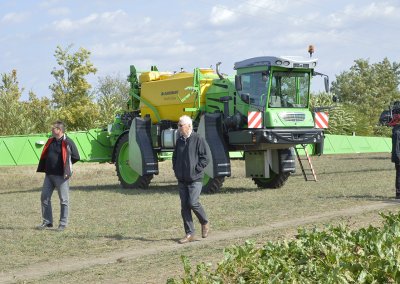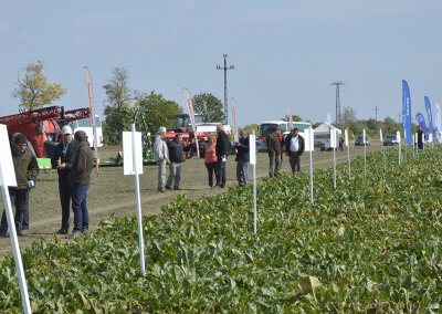 Az előadások után a szántóföldi fajtabemutatóra került sor. Koszó István cukorrépa ágazatvezető az elvégzett agrotechnikai eljárásokat és a 2018-as év termesztési tapasztalatait ismertette, míg Ifj. Paulik Árpád növényvédelmi ágazatvezető az elvégzett gyomszabályozás folyamatait.