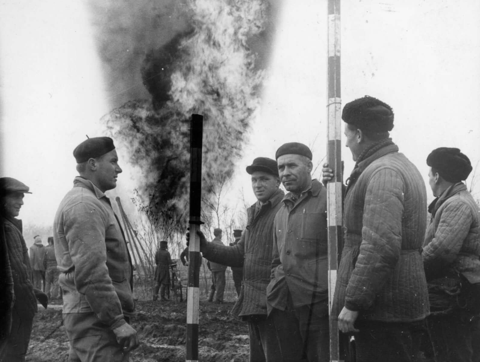 Medve Julianna, akinek a fotókat is köszönhetjük, így emlékszik vissza a történtekre: „Találtunk néhány képet az 1961. december 29-én bekövetkezett gázkitörésről, amely Mezőhegyes és Battonya között a 48-as erdő szélén történt. Hét éves voltam és kivitt Apukám megnézni. Arra emlékszem, hogy hatalmas volt a tűz, messzire látszott a fénye és görögdinnye nagyságú földlabdák röpködtek a levegőben.”