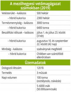 15 ezer tonna csöves – 8500–9000 tonna morzsolt – vetőmag-kukoricát, éves szinten 4 ezer tonna vetőmagbúzát, 6200 tonna étkezési búzát, a ménesbirtok állatállományának szükséges összes takarmánynövényt – 120 tonna tavaszi árpát és 200 tonna tavaszi zabot, 9 ezer tonna takarmánykukoricát, 3 ezer tonna szóját –, valamint 3 ezer tonna napraforgómagot növényolajipari célra. Az üzem modernizálását követően a szójavetőmag előállítása is a termelés része lesz, további cél pedig a feldolgozókapacitás bővítése.”