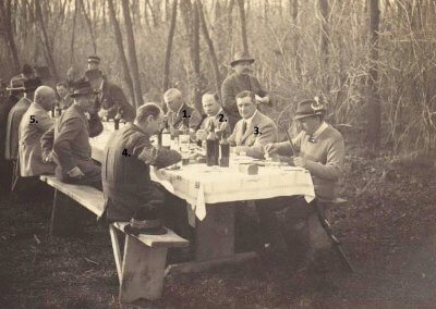 „02_1. gróf Csáky Károly honvédelmi miniszter; 2. Mayer János földművelésügyi miniszter; 3. Horthy Miklós kormányzó; 4. gróf Bethlen István miniszterelnök; 5. Tasnády Szűcs Andor honvédelmi államtitkár” – az előző képen számokkal jelöltük meg Horthy Miklós kormányzót és a kormány tagjait