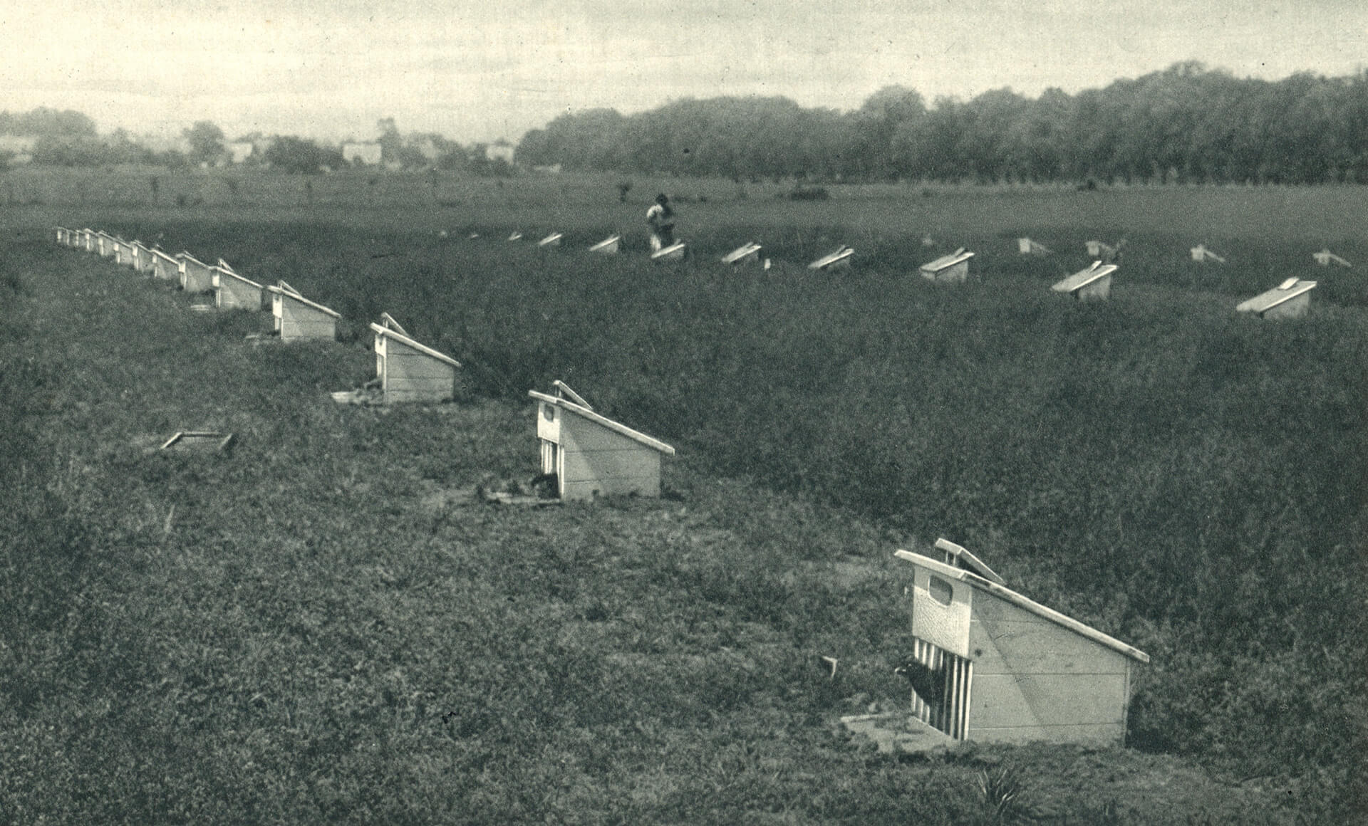 „04_Fácánketrecek a lucernásban” – A keltetéshez kotlóstyúkokat alkalmaztak, ez lett a híres mezőhegyesi baromfitenyésztés alapja. Helytörténeti Gyűjtemény, Mezőhegyes fotóarchívuma