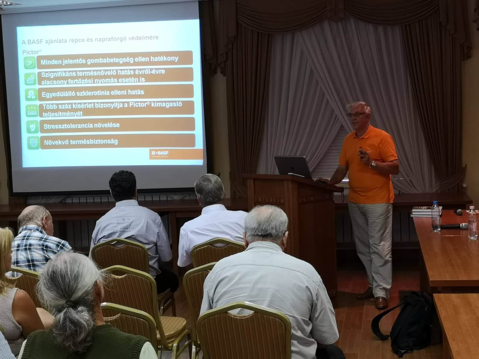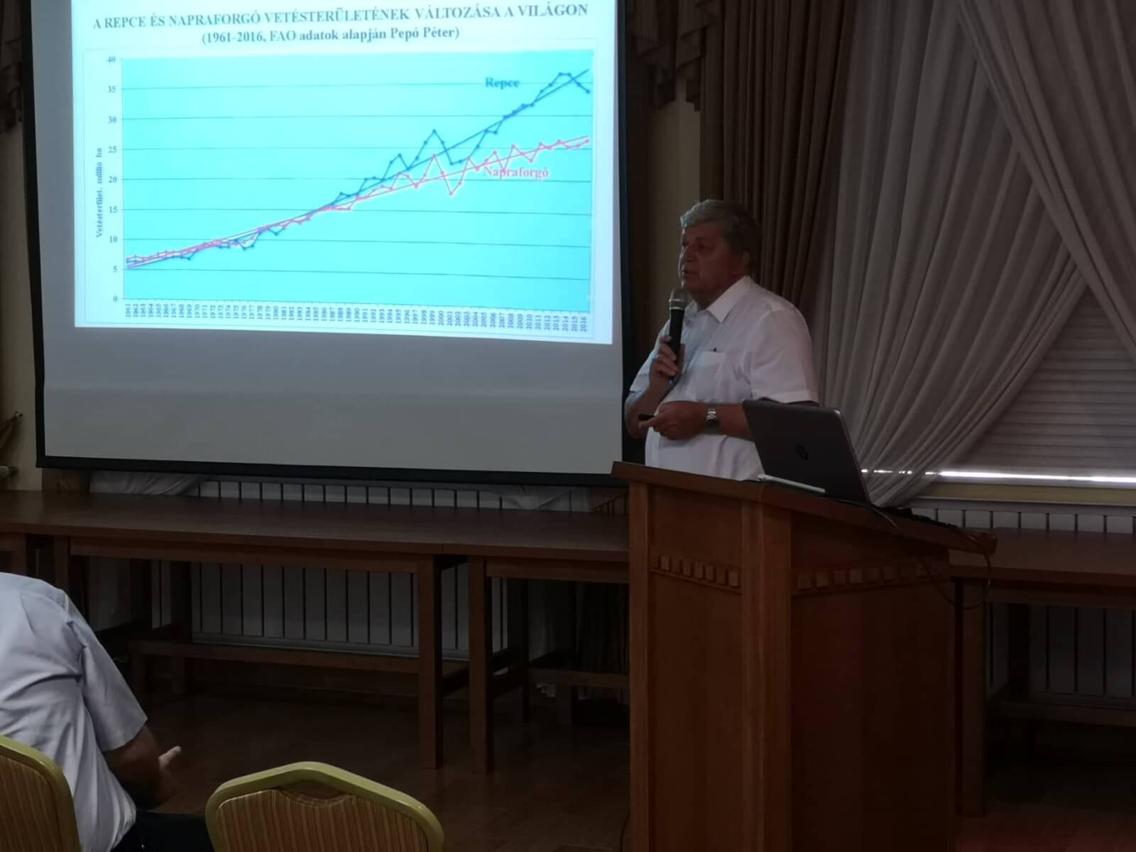 2019. augusztus 22-én napraforgó szántóföldi fajtabemutatót tartott a Nemzeti Ménesbirtok és Tangazdaság Zrt. A rendezvényt Isaszegi Norbert termelési vezérigazgató-helyettes nyitotta meg, majd Dr. HC. DR. Pepó Péter, a Debreceni Egyetem Intézet Igazgatója tartott színvonalas előadást „A termésbiztonság jelentősége a napraforgó-termesztésben” címmel. További két előadást hallgathattak meg a résztvevők: Hőgye Szabolcstól [FMC] A sikeres napraforgó gyomirtásért témakörben és Pál Bertalantól [BASF] „A betegségmentes napraforgó-termesztés sikeréről” címmel. Ezt követően került sor a szántóföldi fajtabemutatóra, ahol 12 fajtatulajdonos 50 napraforgó fajtáját mutattuk be, kiegészítve gyomirtási és növenyvédelmi bemutatókkal, valamint a Humin Aqua technológia alkalmazásával. Zárásként minden érdeklődőt ebéddel vendégeltünk meg. Köszönetet mondok partnereinknek, a megjelent érdeklődőknek, valamint minden munkatársamnak, akik segítettek a sikeres lebonyolításban!