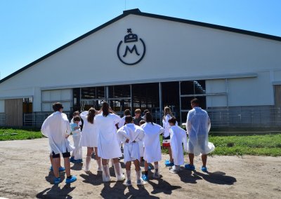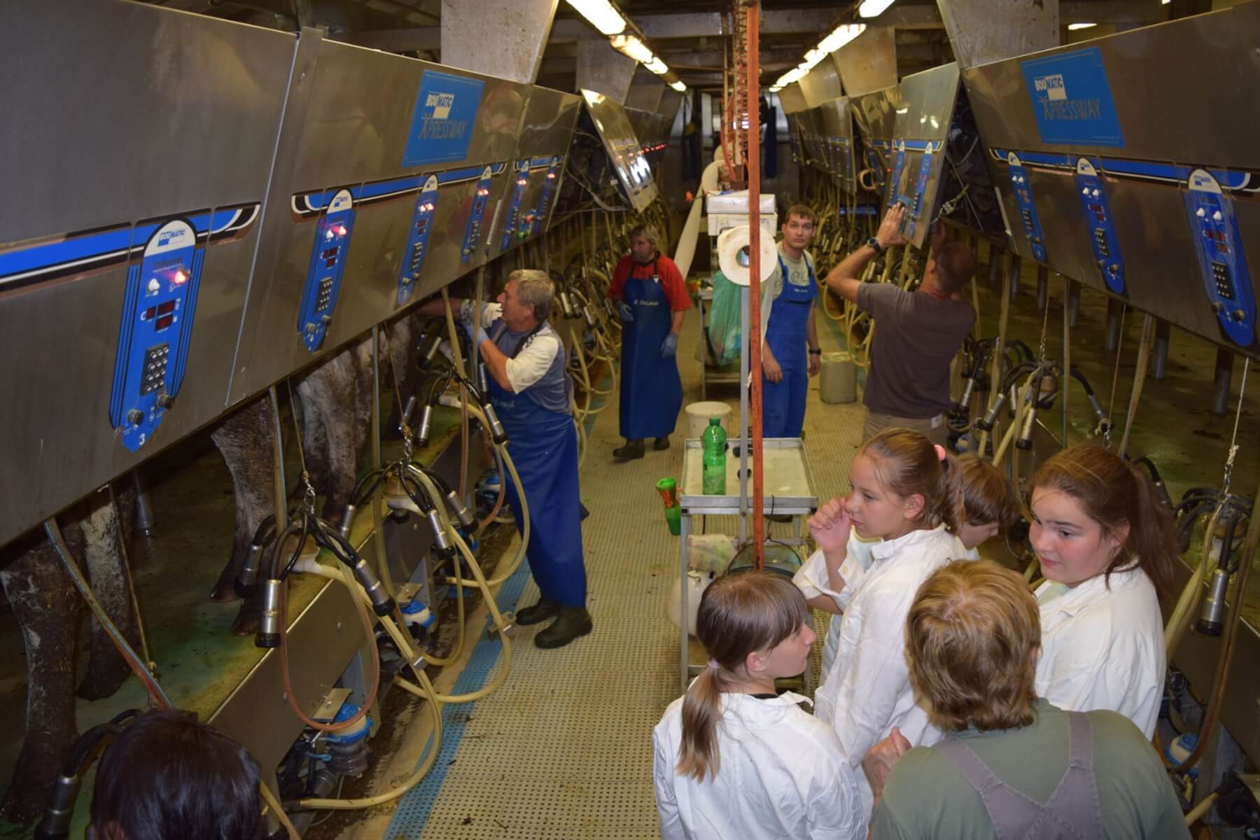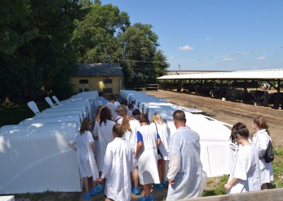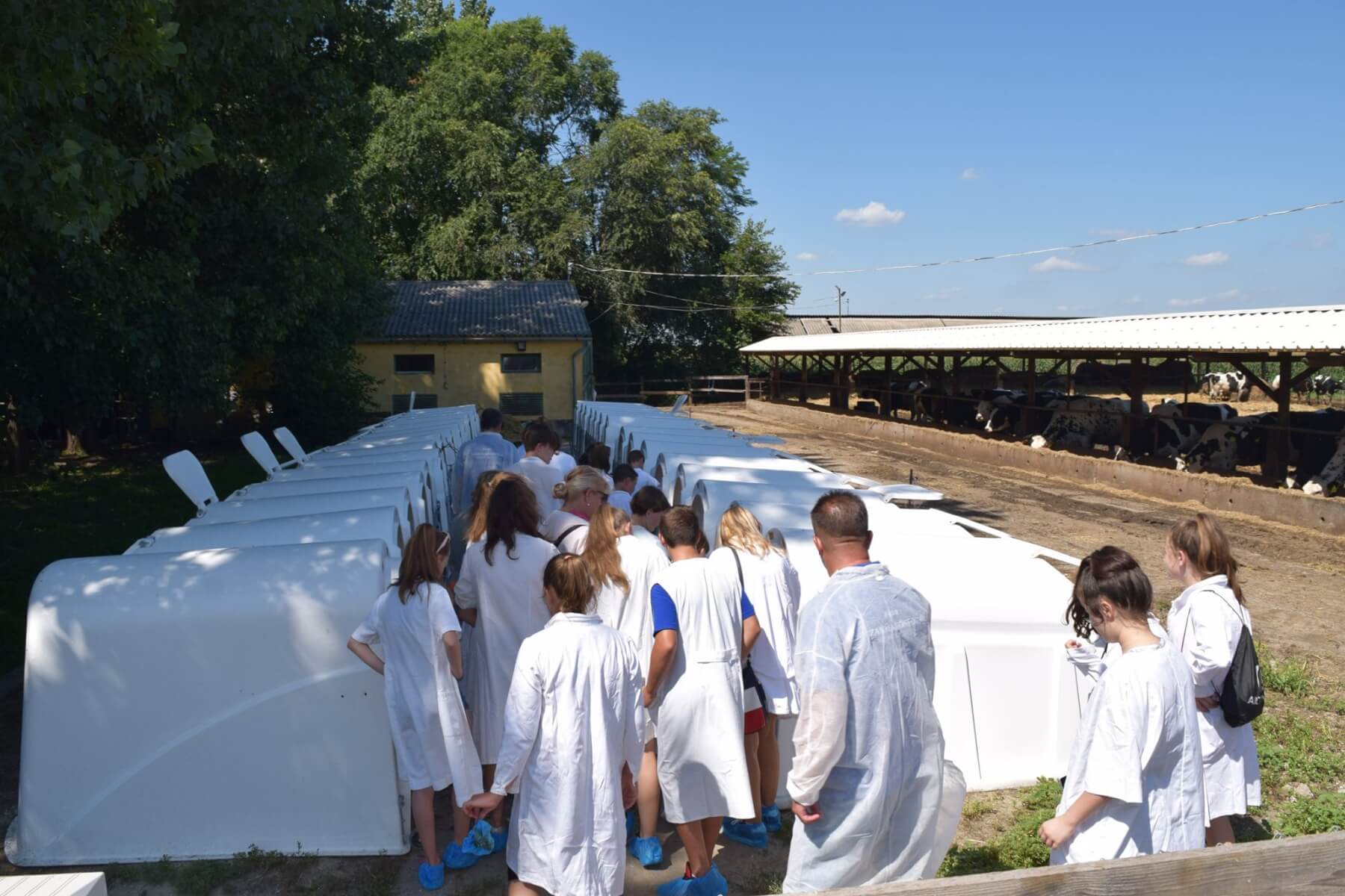 A Tangazdaság 11. majori szarvasmarha telepén folytattuk tanulmányutunkat, megtapasztaltuk a fejés gondos műveletét, megetettük, megitattuk a borjakat és ámulva néztük az új, átadásra váró, robottechnikával felszerelt istállórendszert.